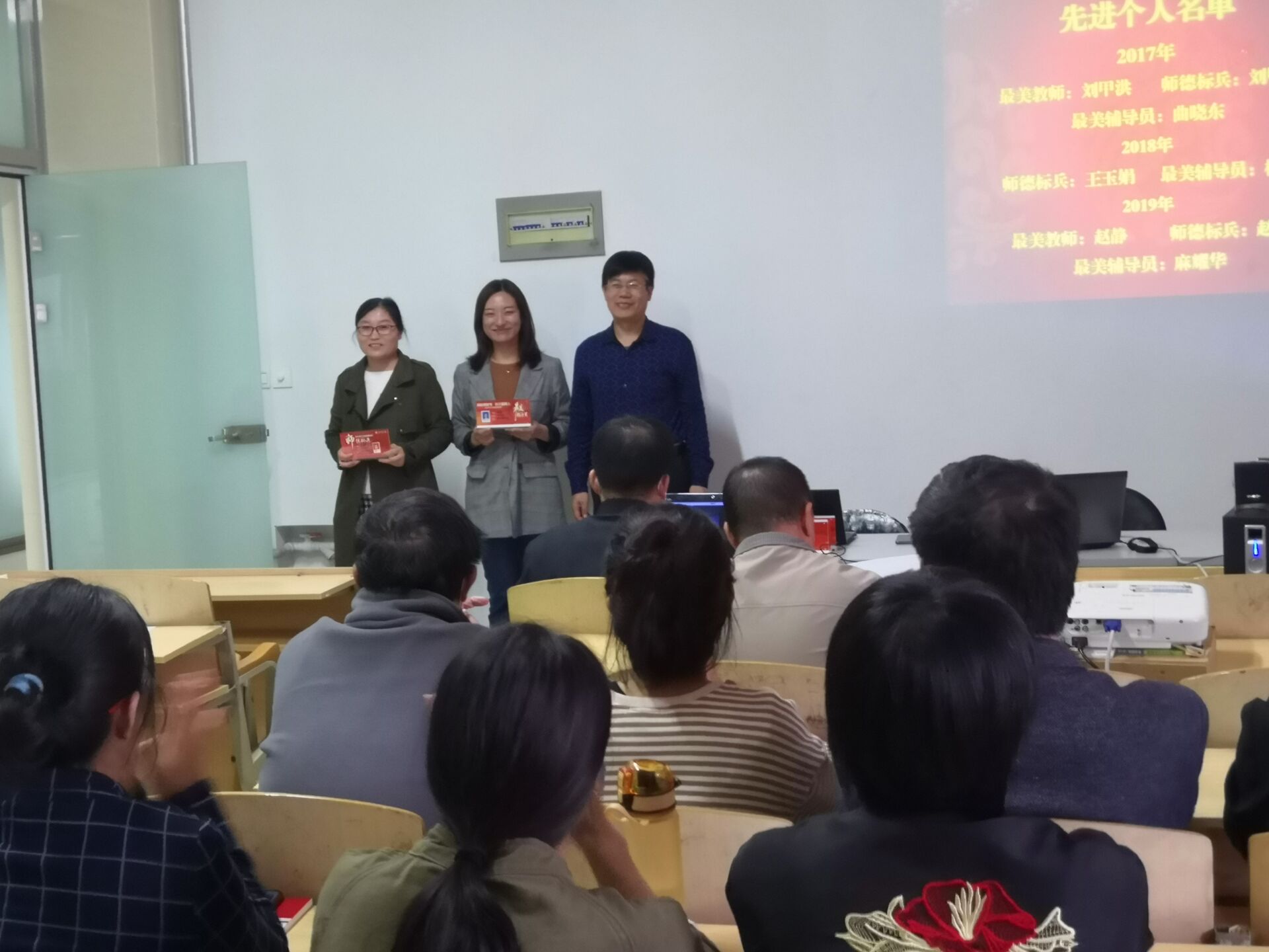 会上,王平经理首先对获奖者表示祝贺,对全体教师的无私付出表示感谢。王经理希望全体教师能够保持良好状态,以崭新的姿态迎接未来的各项工作和挑战。在全体教师的热烈掌声中,王经理为获奖者进行颁奖并合影留念。