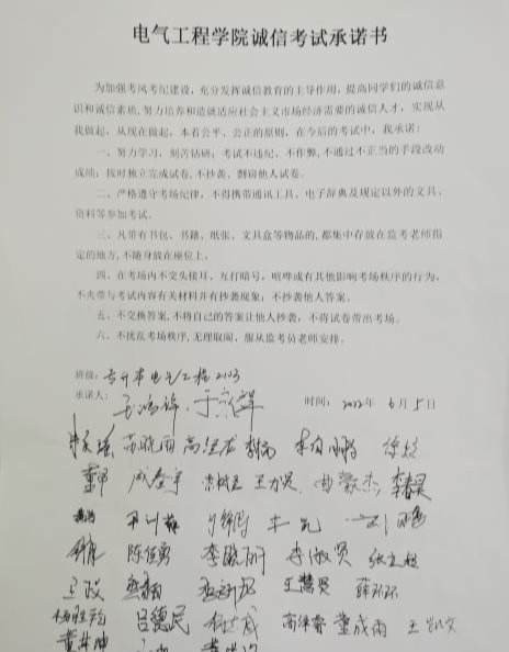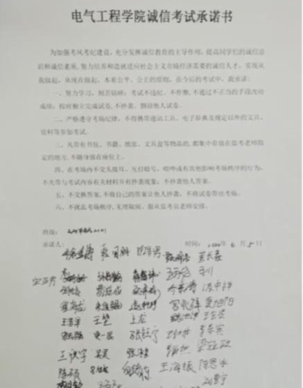 通过签订承诺书,强化诚信意识,提前做好准备,摆正心态面对考试。诚信考试是保证公平公正的平台,考试时注意考场纪律,尊重监考教师,去除侥幸心理,去除畸形“哥们义气”,诚信做人、诚信考试。