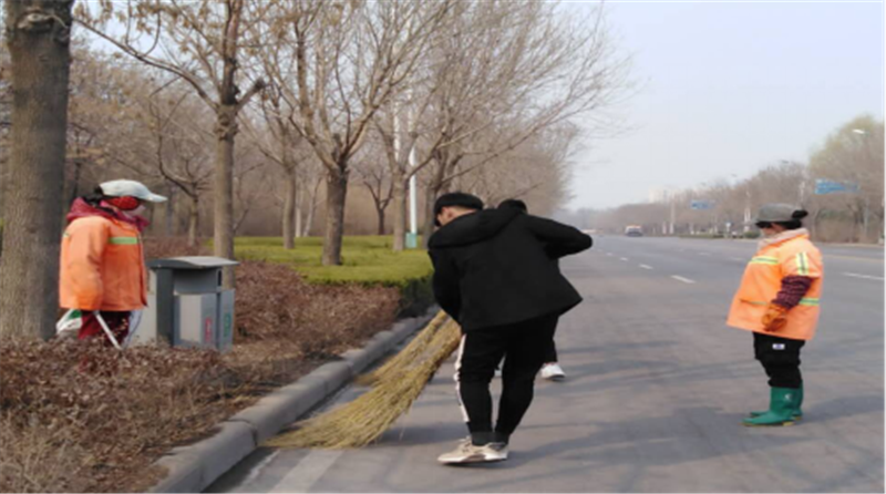 在活动过程中,志愿者们手拿火钳、扫帚、垃圾袋等工具,沿着康博大道清洁路面垃圾,经过大家的辛勤劳动,道路和花坛面貌焕然一新。