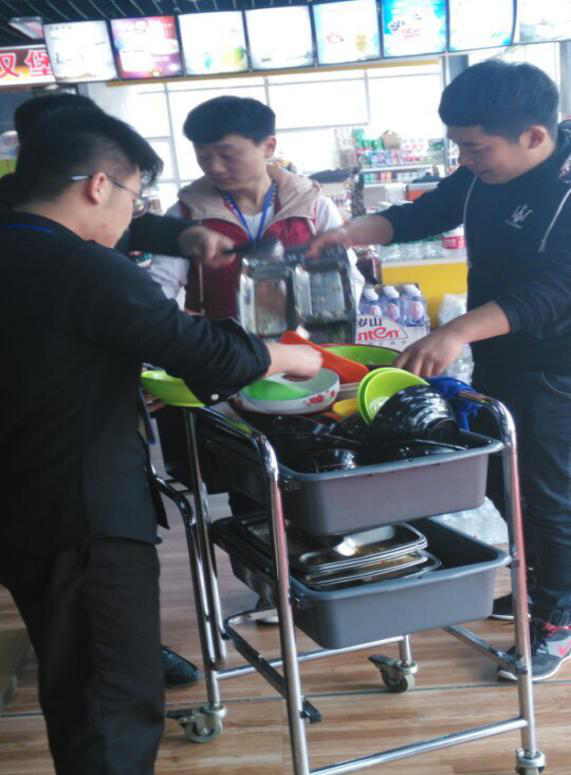 3月15日下午,同学们按时来到华硕餐厅,首先接受了餐厅工作人员的细心培训,同学们掌握了工作基本要领,然后由员工会主席进行了人员分组、分工,大家干劲十足,经过一个半小时的工作,同学们圆满完成了工作任务。