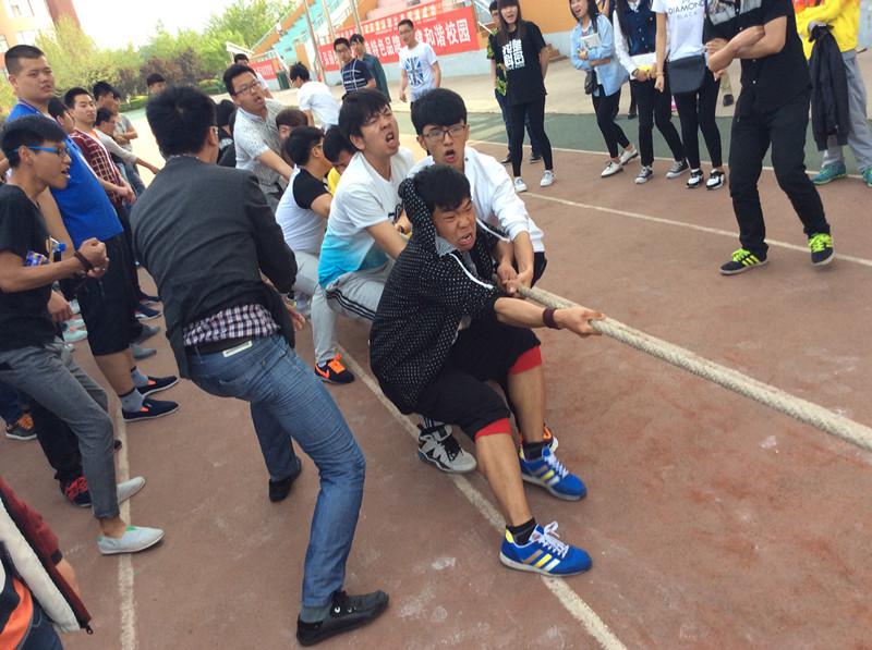 比赛以班级为单位,三局两胜制方式,各参赛班级先进行抽签,每组优胜队伍晋级下一轮比赛。比赛开始,每班除参赛队员外的同学,都自发组成啦啦队,为参赛人员加油助威。每场比赛都异常激烈。在啦啦队接力呐喊“加油、加油。”的加油声中,两边参赛队员男生个个都涨的面红耳赤,竭尽全力向后拉;女生也巾帼不让须眉,放下平时的淑女风范,攥紧绳子,全力向己方拉。在这声威浩荡中,各班队伍都使出最大的力量,把绳子拉向自己一方。