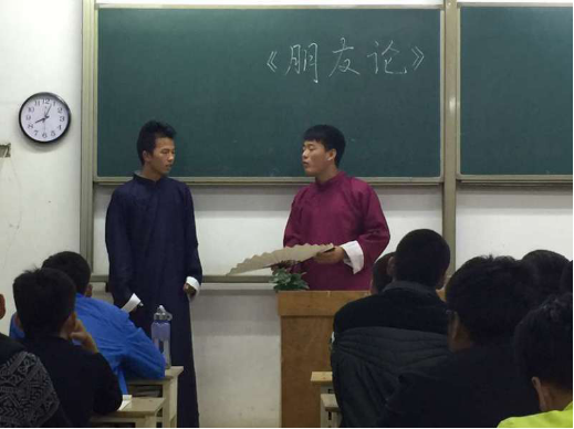 而在两天特别的晚自习中,周四晚自习是最受同学们欢迎的。同学们在观看了华宇台素质教育片之后,将理论与实践相结合,由韩隆凯与沁馨小筑社团带来自编自导的相声等文艺节目与素质教育片相得益彰,用表演的方式讲述发生在同学们身边的事,沁馨小筑社团诙谐幽默的表演,常常逗得大家开怀大笑,既活跃了课堂气氛,又表扬了先进、批评了落后。