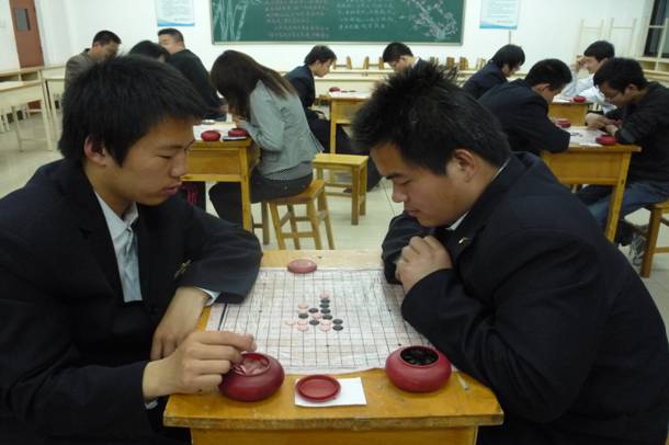 为丰富同学们的课余生活,促进我系课余文化建设,值此“校园科技文化节”之际,电气工程系举办了五子棋大赛。2012年4月17日晚由电气工程系团总支主办、电气工程系员工会学习部承办的“棋逢对手,黑白争霸”五子棋大赛决赛在10#213隆重举行。此次活动邀请到的嘉宾有电气工程系团总支李俊老师,辅导员杨爱忠老师,电气系班主任马安会老师。