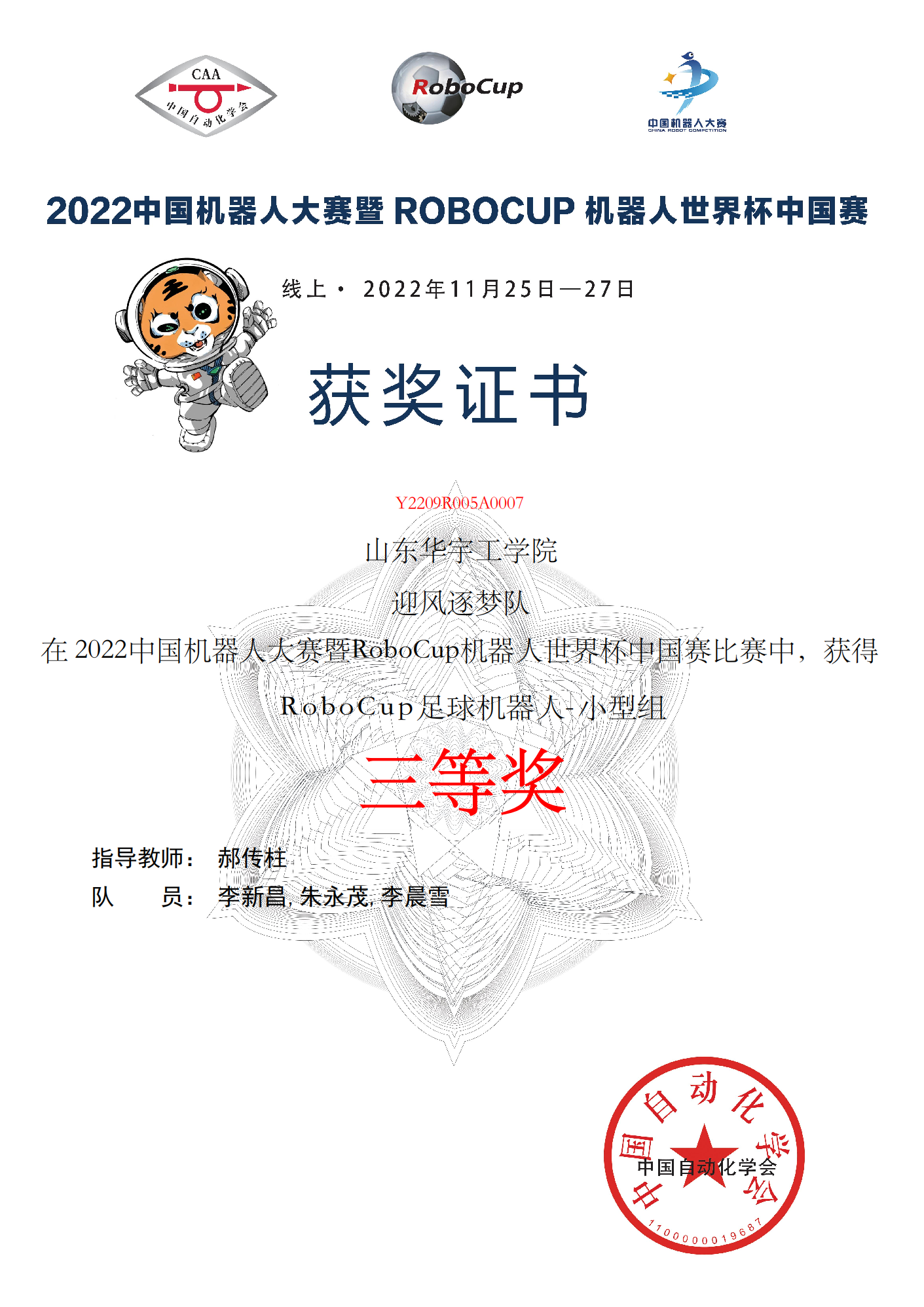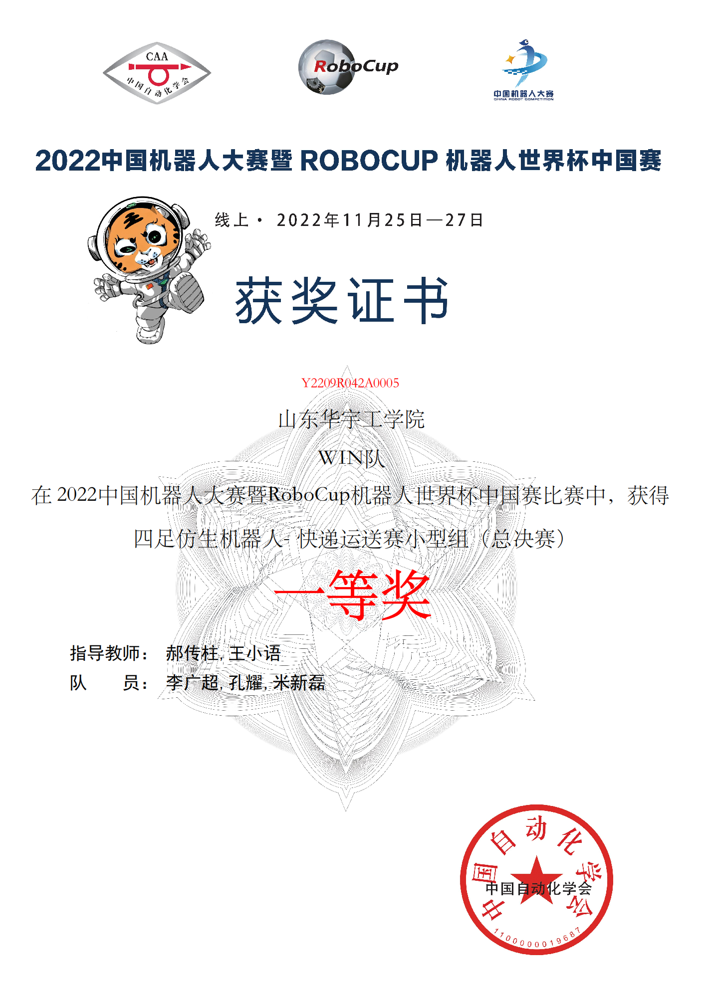 2022中国机器人大赛暨RoboCup机器人世界杯中国赛全国总决赛于11月25至26日线上举行。古天乐代言太阳集团的李广超、孔耀、米新磊组成的参赛团队经过激烈比拼,以优异的成绩勇夺大赛一等奖!获奖等级创造了历史新高。