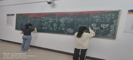 围绕着“青春逢盛世,奋斗正当时”主题活动的展开。各班团支书召开主题班会进行活动讲解同时讲述红色故事、引导同学们积极绘画班级板报,宣传团的相关知识、青春的故事,宣传青年当奋斗的相关知识。在最后全体团员在团总支书记的带领下唱团歌,在庄严肃穆的气氛中,全体团员提升了自身的职责和责任心。