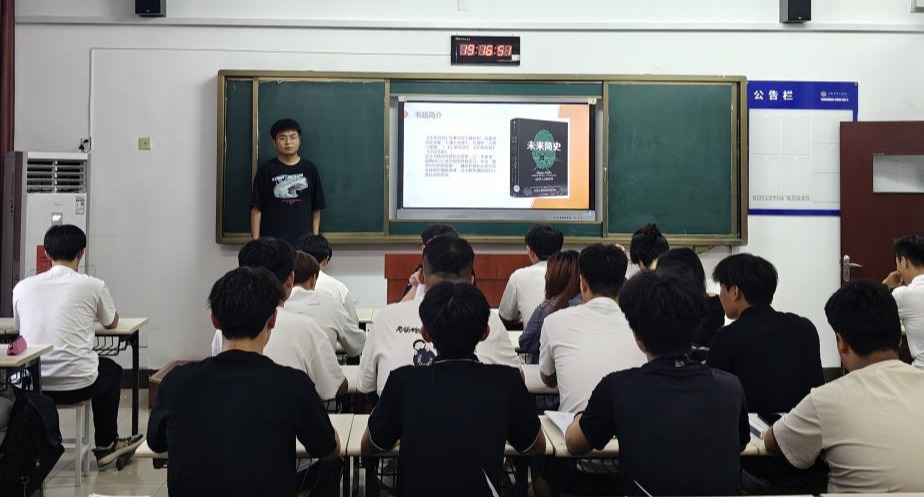 活动围绕《未来简史》展开,通过观看短视频、现场谈论的形式,同学们围绕书籍内容及人物分享阅读感悟。大家积极发言,针对书籍内容及人物畅聊心得。其中,本科电控2402班的王伟杰同学结合书中对科技与人类未来的探讨,谈及对自身专业学习的启发;本科测控2402班的董业帅同学从书中的历史视角出发,分享对社会发展的独到见解。