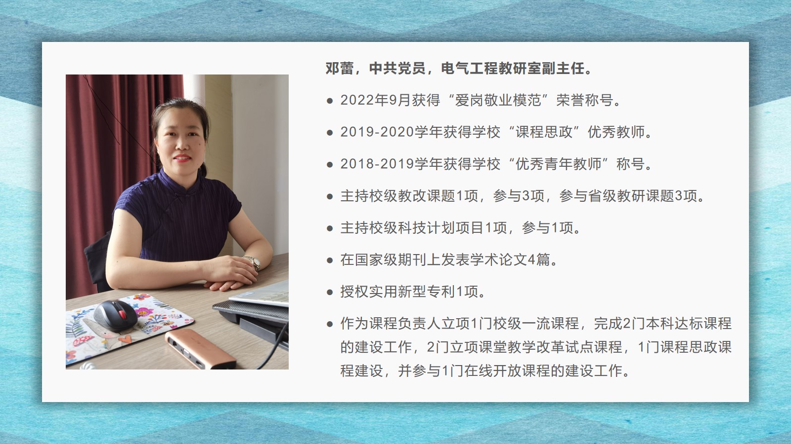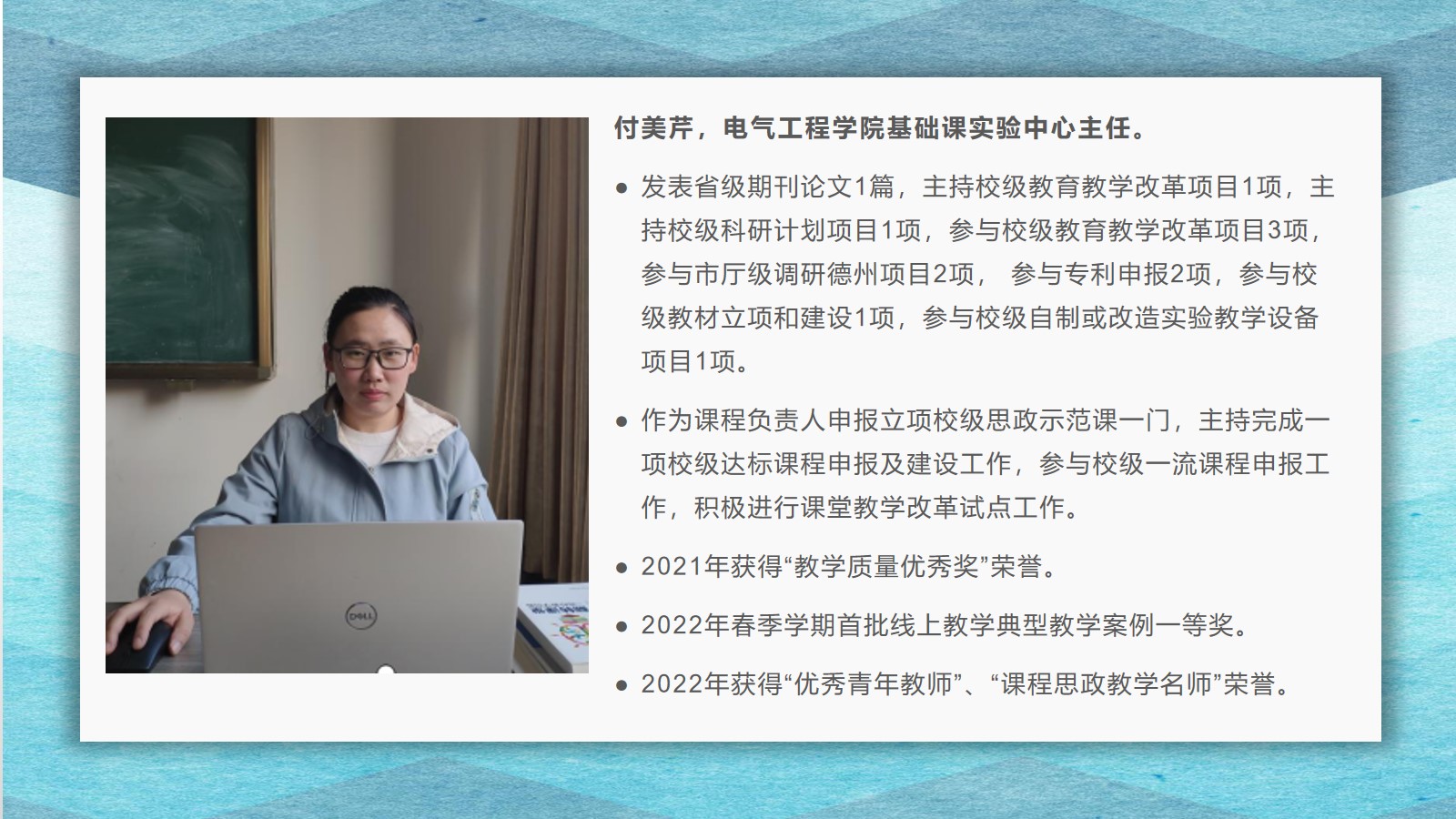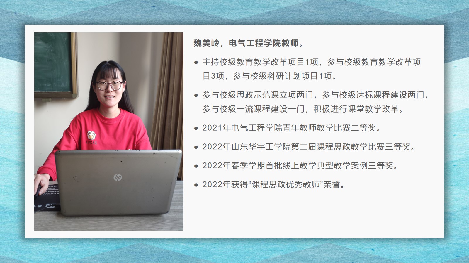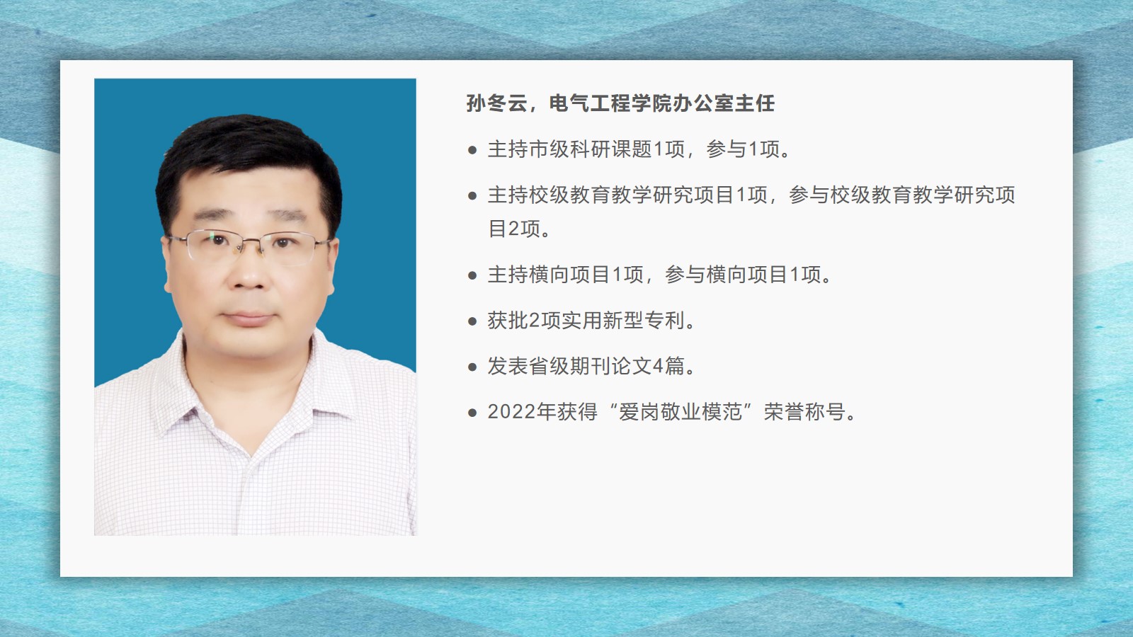 2021-2022学年,古天乐代言太阳集团坚持全面落实“立德树人”,在教学、科研、员工管理等方面,取得了较好的成绩,公司荣获古天乐代言太阳集团先进集体荣誉称号。为了弘扬尊师重教的良好风尚,公司通过校园网、微信公众号等宣传平台,宣传了2021 年度华宇最美教师(辅导员)、2021—2022 学年“课程思政”优秀教师、2021—2022 学年“四有”好老师、优秀青年教师、优秀思想政治教育工作者等先进个人的典型事迹,充分发挥榜样的引领作用,引导全院教师坚定理想信念、厚植爱国情怀、涵养高尚师德,激励教师踔厉奋发、笃行不怠,以更加坚定的信心和更加饱满的热情投入到教书育人的工作中。